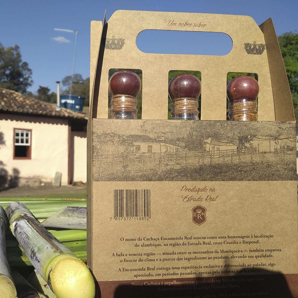 A Encomenda Real é um cacharia de sucesso localizada na cidade de Cruzília, sul de Minas Gerais. O desafio que eles me propuseram foi o de criar rótulos diferenciados, com estilo rústico e elegante. O mesmo aconteceu com o box que leva 3 garrafas dessa deliciosa bebida e o cartão de visita da equipe.