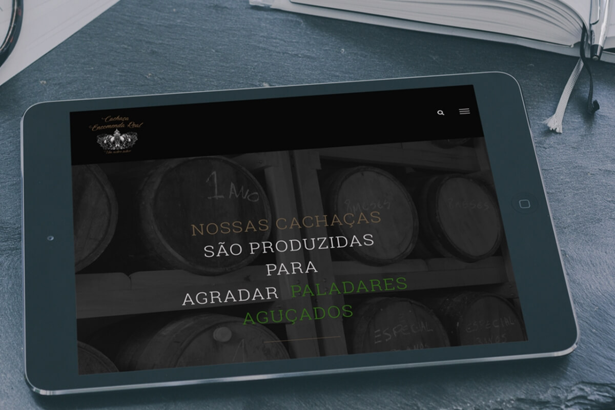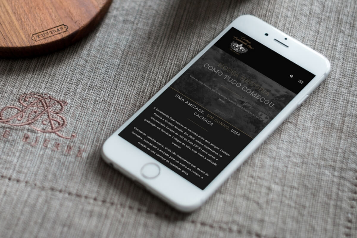 O objetivo do projeto foi traduzir a qualidade da bebida produzida pela Encomenda e sua identidade rústica e interiorana. Usei texturas de madeira que entregam um aspecto de rusticidade e usei o preto para adicionar elegância ao site.